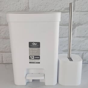 Conjunto para Banheiro Lixeira de Pedal 12L Trium e Escova Sanitária com Suporte Dual Branco OU.
