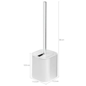 Detalhes da escova sanitária com suporte: - Escova desmontável, permite trocar apenas a base com cerdas para reposição; - Reservatório de água que impede que as cerdas fiquem molhadas; - Sistema de abertura e fechamento acionado pela própria escova; - Com tampa, deixando o produto mais vedado.
