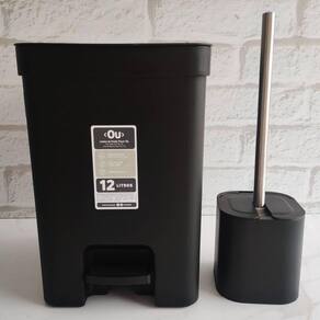 Conjunto para Banheiro Lixeira de Pedal 12L Trium e Escova Sanitária com Suporte Dual Preto OU.