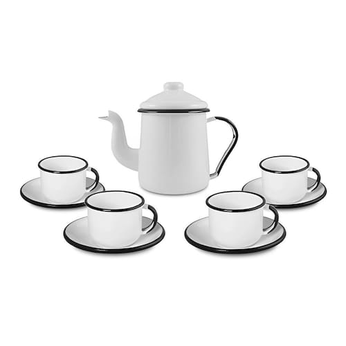 Conjunto para Café Esmaltado 9 Peças Branco Ewel - Na sua casa!