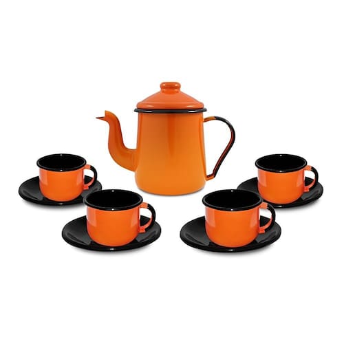 Conjunto para Café Esmaltado 9 Peças Laranja Ewel - Na sua casa!