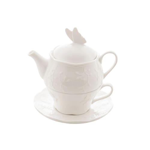 Conjunto Para Chá Em Porcelana Butterfly Flower Com 3 Peças Lyor -