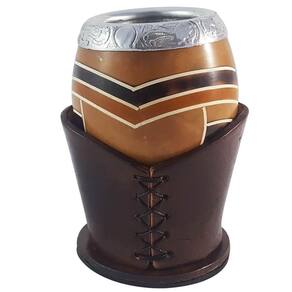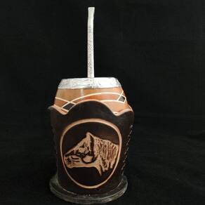Desfrute seu chimarrão com qualidade, sabor e tradição! #Formato Coquinho #Cuia De Porongo #Tripé Em Couro Garantia: 90 dias / Peso: 185g / Cor: Marrom e Alumínio / Ref: 33770 Dimensões aproximadas da Cuia: 9,5cm (C) x 9cm (L) x 13,5cm (A) Dimensões da Bomba: 2,8cm (C) x 0,5cm (L) x 21cm (A) Abertura de Bocal: 5cm Base tripé: 8,5cm Cuidados: Após tomar seu chimarrão, retire a erva mate e lave internamente com água corrente. Guardar em local seco e arejado, em pé, é importante manter a cuia seca; Não lavar com materiais abrasivos. OBS: As cuias podem sofrer variação de medidas em função da matéria prima utilizada, o porongo. Material: - Porongo; - Alumínio; - Couro. Desfrute do seu chimarrão com este kit de cuia e bomba. Um conjunto de excelente qualidade composto por uma cuia de porongo em formato coquinho, um tripé em couro que acomoda a cuia e uma bomba de inox com bojo pera e cano ornamentado com desenho em relevo. A cuia possui desenho abstrato formado por formas geométricas com linhas e cores. O bocal em alumínio trabalhado dá um toque especial para a cuia. Desfrute do sabor da tradição em um tradicional kit para chimarrão.