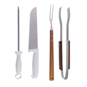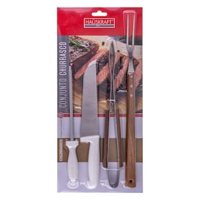 Conjunto para churrasco com material de excelente qualidade, inox, madeira e polipropileno. Jogo completo para você fazer o seu churrasco no mais alto estilo, são ergonômicos e facilitam o manuseio e preparo de carnes.