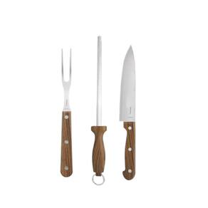 Conjunto Para Churrasco Wood Aço Inox Faca, Chaira E Garfo
