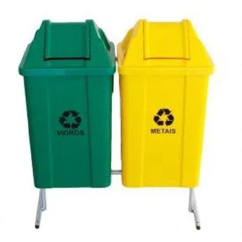 Conjunto Para Coleta Seletiva 60l Com 2 Lixeiras Com Suporte Cor:vermelho Conjunto de coleta seletiva de 60L com 02 lixeiras. Injetados em plástico polipropileno (PP), estrutura metálica confeccionada em aço carbono 1020 galvanizado.