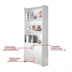 O Conjunto Multiuso Escritório irá transformar seu ambiente de trabalho ou estudo, é ideal para trazer organização e praticidade! Composto por 1 mesa com uma estante integrada e prateleiras espaçosas e 1 armário com 3 prateleiras com chave, para maior segurança dos seus itens, ambos os itens com material principal em MDP e acabamento em Pintura U.V fosco.