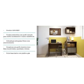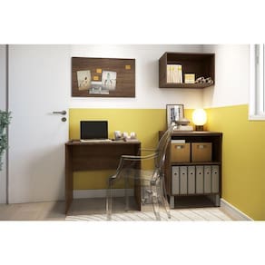 O Armário para Escritório com Escrivaninha, acompanha um painel, balcão e um aéreo para ajudar na organização do seu dia, você pode usar esse produto de maneira bem versátil. Com acabamento em BP, maior resistência contra riscos.