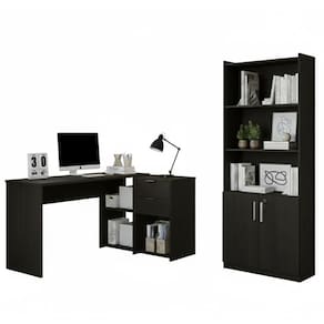 Requer montagem: Sim | Inclui manual de montagem: Sim | Materiais da escrivaninha: MDP | Quantidade de caixas de embalagem: 2 | Largura: 200 | Altura: 75,6 | Profundidade: 45 | é em formato L: Sim Cor: Preto
