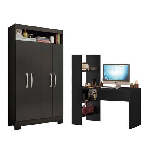 O Conjunto Multiuso Escritório irá transformar seu ambiente de trabalho ou estudo, é ideal para trazer organização e praticidade! Composto por 1 mesa com uma estante integrada e prateleiras e0spaçosas e 1 armário com um nicho aberto espaçoso e quatro prateleiras internas bem distribuídas, ambos os itens com material principal em MDP e acabamento em Pintura U.V fosco.