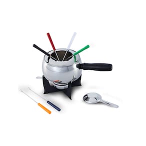 Conjunto para Fondue Inox 11 Peças Brinox Ref: 1241/116 O Conjunto para Fondue tem Caçarola de Aço Inoxidável e é ideal para o preparo de Fondue de Carne, pois concentra mais o calor , fazendo com que o óleo fique no ponto ideal para a fritura. A Caçarola tem cabo longo e capacidade para 1,35 Litros. Completo, vem com um Separador de Garfos, uma Chapa Difusora de Alumínio, 1 Suporte Epóxi e 1 Fogareiro de Aço Inox, Menor e com Abafador. Além disso, acompanha 6 Garfos com cabos coloridos. Faz das ocasiões mais que especiais. - 01 Caçarola Ø 16 cm - Aço Inox - Cabo Longo - 1,35 Litros - 01 Separador de Garfos - Aço Inox - 01 Chapa Difusora de Alumínio - Ø 125 x 2 mm - 06 Garfos - 22 cm - Cabos Coloridos - 01 Suporte Epóxi - 01 Fogareiro Aço Inox Menor com Abafador Material: Aço Inox