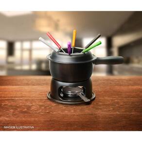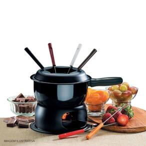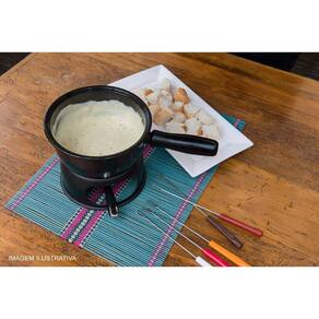 O Conjunto para Fondue tem Caçarola Esmaltada e é ideal para o preparo de Fondues de Queijo, Carne e Chocolate pois aquece menos e mantém os ingredientes na temperatura certa para não queimar. Dica: Para o Fondue de Carne é necessário manter a chama do fogareiro alta. A Caçarola tem cabo longo e capacidade para 1,25 Litros. Completo, vem com um Separador de Garfos, 1 Suporte Epóxi, 1 Fogareiro de Aço Inox, Menor e com Abafador e 1 Base Epóxi. Além disso, acompanha 6 Garfos com cabos coloridos. Faz das ocasiões mais que especiais!