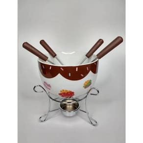 Conjunto para Fondue 6 peças Cup-Cake BrinoxO Conjunto para fondue 6 peças da Brinox é ideal para o preparo de fondue de queijo ou chocolate. O kit é composto por: 1 recipiente cerâmico (11,5cm de diâmetro e 7,5cm de altura) com a cor branca e estampa de Cup-cake na parte externa , 1 base em aço inox de ferro com 10 de diâmetro com suporte para vela e 4 garfinhos em aço inox com cabos em polipropileno.Especificações:material Aço Inox + Ferro + CerâmicaLinha Fondue - PetiscosComposição:Conjunto para fondue 6 peças sendo:01 Base em Ferro com Suporte para Vela 10,5 x 10 x 8 cm01 Recipiente em Cerâmica 11,5 x 7,5 cm04 Garfinhos em Aço Inox com Cabo PP 15 x 1,2 x 1,2 cm