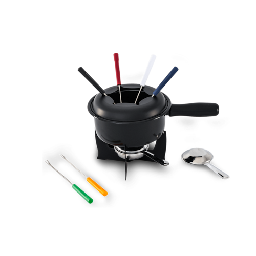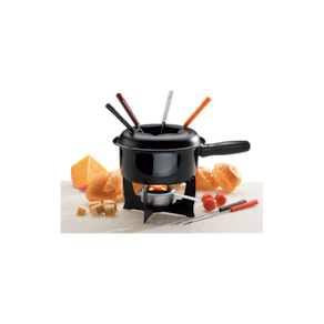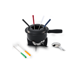 O Conjunto para Fondue tem Caçarola Esmaltada e é ideal para o preparo de Fondues de Queijo, Carne e Chocolate pois aquece menos e mantém os ingredientes na temperatura certa para não queimar. Dica: Para o Fondue de Carne é necessário manter a chama do fogareiro alta. A Caçarola tem cabo longo e capacidade para 1,25 Litros. Completo, vem com um Separador de Garfos, 1 Suporte Epóxi e 1 Fogareiro de Aço Inox, Menor e com Abafador. Além disso, acompanha 6 Garfos com cabos coloridos. Faz das ocasiões mais que especiais!