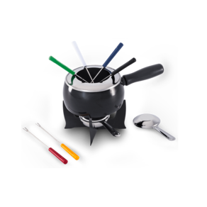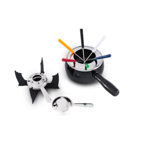 O Conjunto para Fondue tem Caçarola Esmaltada e é ideal para o preparo de Fondues de Queijo, Carne e Chocolate pois aquece menos e mantém os ingredientes na temperatura certa para não queimar. Dica: Para o Fondue de Carne é necessário manter a chama do fogareiro alta. A Caçarola tem cabo longo e capacidade para 1,35 Litros. Completo, vem com um Separador de Garfos, 1 Suporte Epóxi e 1 Fogareiro de Aço Inox, Menor e com Abafador. Além disso, acompanha 6 Garfos com cabos coloridos. Faz das ocasiões mais que especiais!
