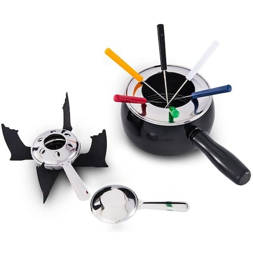 O Conjunto para Fondue tem Caçarola Esmaltada e é ideal para o preparo de Fondues de Queijo, Carne e Chocolate pois aquece menos e mantém os ingredientes na temperatura certa para não queimar. Dica: Para o Fondue de Carne é necessário manter a chama do fogareiro alta.