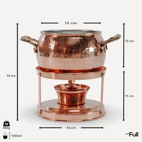 Conjunto para Fondue Rechaud em Cobre Puro Artesanal 1400ml