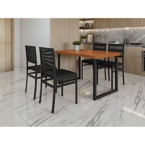 Faz parte do anúncio: 1 Mesa de Madeira Maciça Ripada 1,20x0,75m - Berlim - Paonanda Decor 4 Cadeiras Metálicas - Barcelona - Paonanda Decor Obs.: Não acompanha objetos decorativos. Indicado para uso em áreas internas e semi-abertos, LIVRES DE CHUVA