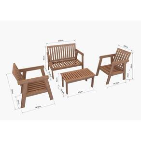Acompanha mesa de centro, duas poltronas individuais e uma poltrona para duas pessoas, com almofada de espuma e tecido impermeável.