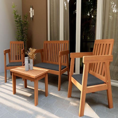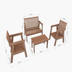 Conjunto FAMILIA, acomoda até 4 pessoas com conforto, estilo e personalidade. Acompanha mesa de centro, duas poltronas individuais e uma poltrona para duas pessoas, com almofada de espuma e tecido impermeável. Este conjunto traz um charme especial para qualquer ambiente. Deixe a área da piscina, varandas ou jardins ainda ainda mais aconchegantes. Seu acabamento em Stain protege e realça o aspecto agradável da madeira marroml. Materiais: Madeira Eucalyptos Grandis de origem 100% reflorestada, altamente resistente e durável, oferecendo total segurança para sua família. Estofados confeccionados em tecido Waterblock (Impermeável), excelentes para áreas externas e muito práticos de manter e limpar. Um bônus extra para famílias com pets e crianças. A Mesa Suporta Até: 30 kg Acompanha Cadeiras: 03 Acompanha Espreguiçadeira: Não Altura Ajustável: Não Altura do Conjunto: 90 cm Ambiente Principal: Jardim e Varanda Base Antiderrapante: Não Complexidade da Montagem: Baixa: pode ser montado por uma pessoa sozinha Cor: Amadeirado/Preto Cor do Produto: Amadeirado/Preto Informações Complementares: 2 Poltronas Individuais, 1 Poltrona 2 Lugares, 1 Mesa de Centro, Almofadas Ipermeáveis Itens Inclusos: 2 Poltronas Individuais, 1 Poltrona 2 Lugares, 1 Mesa de Centro, Kit Ferragens, Manual de Montagem Manual de Montagem e Instalação: https://cdn2.madeiramadeira.com.br/atributo/zanimar-moveis-ltda/1403501-manual-de-montagem-conjunto-familia.pdf Materiais Secundários: Tecido Waterblock - Impermeável Material da Base da Mesa: Madeira Maciça Material do Tampo: Madeira Maciça Material Principal: Madeira Maciça Medida do Tampo: Comprimento: 85 cm Largura: 45,5 cm Medidas da Base da Mesa: 85 cm Medidas da Mesa: A: 42 cm L: 85 cm P: 45,5 cm Mesa Dobrável: Não Necessita Montagem: Sim Origem do Produto: Nacional Peso da Mesa: 8 kg Possui Suporte para Copo: Não Possui travamento: Não Recomendações de uso: De tempos em tempos, lavar e aplicar nova demão de Stein ou outro hidratante para madeira. Resistência à Água: Sim Tampa com orifício removível: Não Tampo Fixo: Sim Tipo de Madeira Maciça da Base da Mesa: Eucalipto Tipo de Madeira Maciça do Tampo: Eucalipto Marca: ZANIMAR MÓVEIS