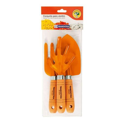 Conjunto Para Jardim Cabo Madeira 3 Peças Tramontina 78100801 1. As ferramentas são produzidas em aço carbono ao boro especial de alta qualidade 2. Recebem pintura eletrostática a pó, que tem uma melhor apresentação visual e alta proteção contra oxidação 3. O cabo destas ferramentas, além de possuir ótima resistência, é fabricado com madeira de eucalipto, de origem renovável 4. A embalagem tem por finalidade facilitar a exposição do produto no ponto de venda. Características: Código: 78100801 Marca: Tramontina Itens: 3 Peças Ean: 7891117000907