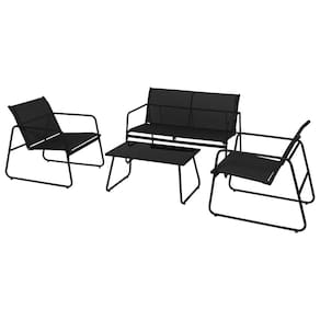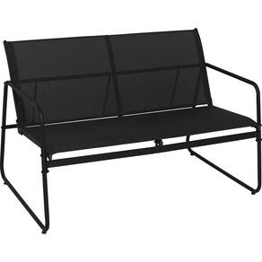 Caracteristicas: Mesa de Centro Retangular: Estrutura em aco resistente Tampo em vidro temperado: mais durabilidade e facil de limpar Cadeira Dupla -2 lugares-: Estrutura reforcada em aco Assento e encosto em textilene: confortavel, ventilado e resistente as intemperies Medidas: 1,10 m -C- x 76 cm -L- x 75 cm -A- Suporta ate 240 kg Cadeira individual: Estrutura em aco de alta qualidade Assento e encosto em textilene para maior conforto e durabilidade Medidas: 59 cm -C- x 76 cm -L- x 75 cm -A- Suporta ate 160 kg cada Acabamento Pintura Epoxi