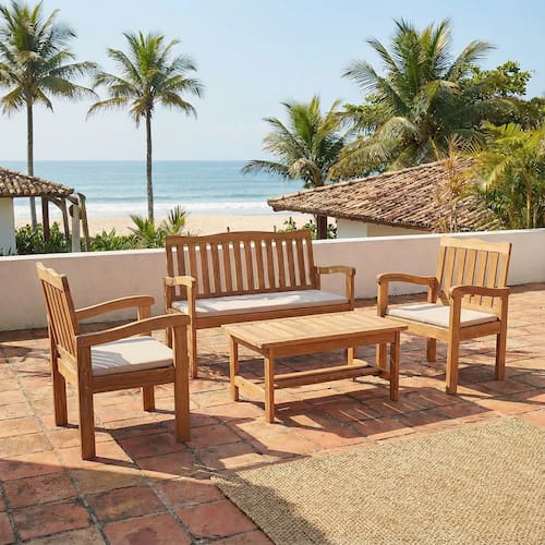 Peso (kg): 9 Garantia: 03 Meses Descrição: Conjunto Nature, acomode até 4 pessoas com muito conforto e segurança, acompanha mesa de centro. Conjunto Nature, com duas poltronas individuas e uma poltrona para duas pessoas, em madeira reflorestável de Eucalipto com estofado impermeável na cor Bege. Crie o espaço ideal para receber visitas em seu jardim, varanda ou na área da piscina. Funcional e agradável para quem ama móveis em madeira. Materiais: Madeira Eucalyptos Grandis de origem 100% reflorestada, altamente resistente e durável, oferecendo total segurança para sua família. Estofados confeccionados em tecido Waterblock (Impermeável), excelentes para áreas externas e muito práticos de manter e limpar. Um bônus extra para famílias com pets e crianças pequenas. Reclinável: Não Tampo Fixo: Sim Peso da Mesa: 9 Mesa Dobrável: Não Mesa Extensível: Não Altura Ajustável: Não Formato do Tampo: Retangular Material da Mesa: Madeira Maciça Mesa Suporta Até: 25 Tipo de Conjunto: Conjunto de Móveis Para Jardim Material do Tampo: Madeira Maciça Origem do Produto: Nacional Possui Travamento: Não Ambiente Principal: Jardim e Varanda Cadeiras Dobráveis: Não Material Principal: Madeira Maciça Necessita Montagem: Sim Quantidade de Lugares: 04 Complexidade da Montagem: Baixa: pode ser montado por uma pessoa sozinha Material da Base da Mesa: Madeira Maciça Possui Apoio para Braços: Sim Altura do Assento até o Chão: 35 Informações Complementares (Novo): Duas poltronas individuais, uma poltrona para duas pessoas e uma mesa de centro, tudo em madeira eucalipto sem almofadas Material da Estrutura da Cadeira: Madeira Maciça Material Principal das Cadeiras/Bancos: Madeira Maciça Recomendações de Uso, Manutenção e Limpeza: De tempos em tempos, lavar e aplicar nova demão de Stein ou outro hidratante para madeira.