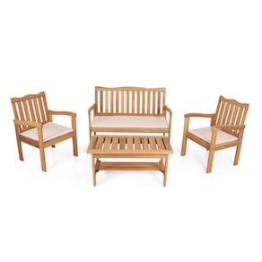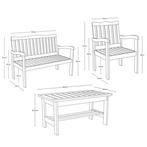 Marca: Yescasa Cor do Produto: Amadeirado/Bege Itens Inclusos: Duas poltronas individuais, uma poltrona para duas pessoas e uma mesa de centro, tudo em madeira eucalipto Linha ou Coleção: Nature Medida da Mesa (A x L x P): A: 42,5 cm L: 85 cm P: 46 cm Medida do Tampo (L x C x E): Comprimento: 85 cm Largura: 46 cm