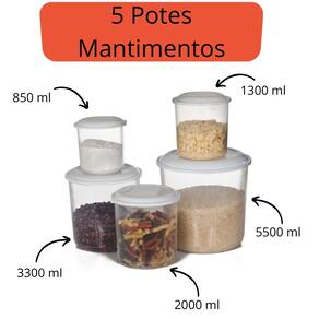 Conjunto Para Mantimentos Transparente Ercaplast 5 Pecas.