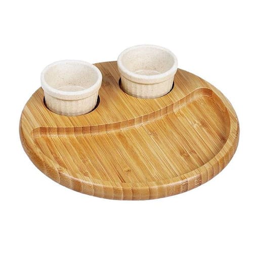 Conjunto Para Petisco Em Bambu - 3 Peças Pd-09323 Conjunto para petisco em bambu/fibra de bambu. Conta com tábua em bambu e dois ramekins em fibra de bambu. Tábua para petisco com formato de sorriso. Dimensões da tábua: 21,3 x1,2 cm Produtos confeccionados em bambu: Utilizamos o bambu, por ser uma matéria prima ecológica, autossustentável e com alta resistência. Além de versátil, o bambu é 30% mais leve que as madeiras de lei. Sua utilização não agride o meio ambiente, pois, quando ceifado rebrota em pouco tempo. Embalagem: caixa preta - 25x25x50 cm cxlxa Peso: 410 g com embalagem