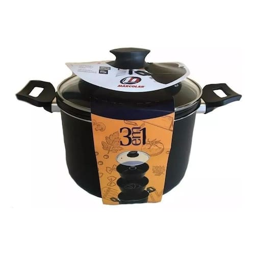 Conjunto Para Pudim E Legumeira, Antiaderente. Conjunto legumeira 3 em 1, contendo uma panela, forma para pudim e bolo além do banho Maria que também pode ser utilizado como escorredor de macarrão. As três peças podem ser utilizados separadamente. Seu corpo Alumínio Antiaderente é resistente as altas temperaturas Capacidade em Volume: 3,9 Litros Altura: 13cm Largura: 20cm Diâmetro:20cm