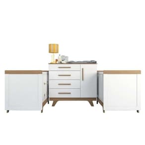 Inspirado no estilo retrô do passado com um toque de modernidade a linha Retrô da Móveis Peroba é encantadora. O berço é certificado pelo INMETRO no registro 000781/2018, tem a opção de ser utilizado como mini cama, acompanha um suporte para mosquiteiro e a base do colchão é regulável em 3 opções de altura, aumentando o conforto no uso diário e na segurança com o crescimento do seu pequeno(a). São móveis com acabamento em pintura UV atóxica e com a qualidade de ser produzido em 100% MDF. As gavetas possuem corrediças telescópicas e suportam até 4kg cada. Tudo para oferecer um quartinho aconchegante, pratico e lindo para o seu bebê. Acompanha Colchão: Não Altura do Conjunto: 104,8 cm Ambiente: Quarto de Bebê Ambiente Principal: Quarto de Bebê codigo_ean: 7909903171691 Complexidade da Montagem: Média: pode ser montado por mais de uma pessoa e/ou necessite de maior conhecimento para montagem Cor: Branco Brilho/Carvalho Cor do Produto: Branco Brilho/Carvalho Estrado com Regulagem de Altura: Sim Informação Complementar: 1x Cômoda de Bebê 1 Porta 4 Gavetas Retrô Branco/Carvalho Largura: 118,6 Altura: 104,8 Peso: 50,78 Profundidade: 50 Necessita Montagem: Sim