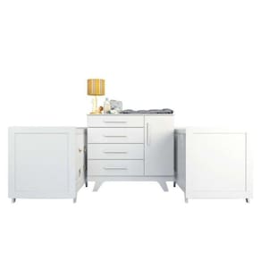 Inspirado no estilo retrô do passado com um toque de modernidade a linha Retrô da Móveis Peroba é encantadora. O berço é certificado pelo INMETRO no registro 000781/2018, tem a opção de ser utilizado como mini cama, acompanha um suporte para mosquiteiro e a base do colchão é regulável em 3 opções de altura, aumentando o conforto no uso diário e na segurança com o crescimento do seu pequeno(a). São móveis com acabamento em pintura UV atóxica e com a qualidade de ser produzido em 100% MDF. As gavetas possuem corrediças telescópicas e suportam até 4kg cada. Tudo para oferecer um quartinho aconchegante, pratico e lindo para o seu bebê. Acompanha Colchão: Não Altura do Conjunto: 104,8 cm Ambiente: Quarto de Bebê Ambiente Principal: Quarto de Bebê codigo_ean: 7909903171684 Complexidade da Montagem: Média: pode ser montado por mais de uma pessoa e/ou necessite de maior conhecimento para montagem Cor: Branco Brilho Cor do Produto: Branco Brilho Estrado com Regulagem de Altura: Sim Informação Complementar: 1x Cômoda de Bebê 1 Porta 4 Gavetas Retrô Branco Largura: 118.6 Altura: 104,8 Peso: 50.78 Profundidade: 50 Necessita Montagem: Sim