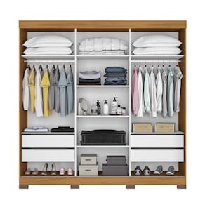 Deixe seu quarto mais organizado e elegante com o Conjunto Para Quarto Amoudi Móveis. Composto por um guarda-roupa com 3 portas de correr e espelho, um closet sem portas com 4 gavetas e uma cômoda com 4 gavetas e 1 porta, ele oferece amplo espaço interno e design moderno para transformar o ambiente.