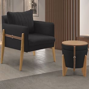 O Puff Orion em Veludo complementa a poltrona com seu design elegante e versátil. Revestido no mesmo veludo luxuoso, o Puff é um acessório funcional que pode ser utilizado como apoio para os pés, mesa de centro ou assento adicional. Acompanha Almofadas extras: Não Acompanha Puff: Sim Almofada do assento: Removível Almofada do encosto: Removível Altura do assento até o chão: 45 cm Altura do Encosto: 35 cm Ambiente Principal: Sala de Estar Complexidade da Montagem: Baixa: pode ser montado por uma pessoa sozinha Cor: Preto Cor do Produto: Preto Design Assinado: Não Enchimento do Braço: Fibra Siliconada Encosto para a Cabeça: Não Estampado: Não Extensível: Não Itens Inclusos: 1 Poltrona 1 Puff Linha ou Coleção: Orion Manual de Montagem e Instalação: https://cdn2.madeiramadeira.com.br/atributo/house-deccor/2313775-5721-17261623455647.pdf Material do Braço: Madeira Material dos Pés: MADEIRA Modelo de Poltrona: Fixo Necessita Montagem: Sim Origem do Produto: Nacional Peso: 10 kg Possui Percintas Elásticas: Sim Possui Pés: 04 Possui Rodízio: Não Recomendações de Uso, Manutenção e Limpeza: Limpar somente com pano macio e seco, não colocar diretamente em incidência da luz solar. Sistema de Montagem: Parafusos Suporta Até (kg): 120 kg Tecido Predominante: Veludo Tipo de Assento: Fixo Tipo de Encosto: Fixo Tipo de Poltrona: Decorativa