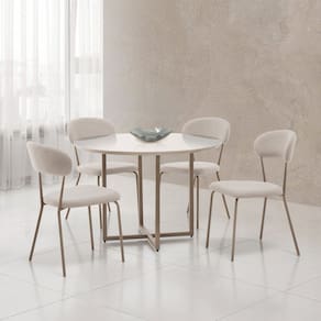 A mesa tem formato redondo, perfeita para tornar os momentos em família ainda mais próximos. O tampo em MDF com vidro colado é fácil de limpar e traz um acabamento sofisticado, unindo. Medida da Mesa (A x L x P): 76X110X110 Peso da Mesa: 30,9 kg Mesa suporta até: 20 kg Acabamento da Cadeira/Banco: Pintura Epóxi Acabamento da Mesa: Pintura Epóxi Acompanha Manual de Instalação: Sim Almofada do assento: Fixa Almofada do encosto: Fixa Altura do Conjunto: cm Ambiente Principal: Sala de Jantar Cadeira/Banco estofada: Encosto e Assento Estofados Cadeira/Banco Estofada: Encosto e Assento Estofados Cadeira/Banco suporta até: 120 kg codigo_ean: 7900288180247 Complexidade da Montagem: Baixa: pode ser montado por uma pessoa sozinha Configuração do Conjunto: Mesa com Cadeiras Cor: Cinza / Bege / Off White Cor da Base: Bege Cor das Cadeiras: Bege Cor do Produto: Cinza / Bege / Off White Cor do Tampo: Off White Cor Secundária: Bege De Canto (Canto Alemão): Não Design da Base: Padrão Enchimento do Assento: Espuma D-23 Enchimento do Encosto: Espuma D-16 Escala de Brilho: Semi-Fosco Espessura do Tampo: 28 mm Formato do Tampo: Redondo Informações Complementares: Mesa em Aço Carbono na cor Cinza - tampo Off White - Cadeiras em Aço Carbono na cor Cinza e revestimento Linho A-512 (Bege) Itens Inclusos: 1 Mesa, 4 Cadeiras, Kit Ferragens e Manual de Montagem Largura do Conjunto: cm Linha ou Coleção: Ditalia Manual de Montagem e Instalação: https://product-hub-prd.madeiramadeira.com.br/399127735/documents/39150855-4e32-4548-8a3d-6e9ae9dd20ed3015372598517507831631353.pdf Marca: Aço Nobre Móveis Material da Base da Mesa: Aço Carbono Material da Estrutura da Cadeira: Aço Carbono Material do Tampo: Vidro/MDF Material Principal: Aço Carbono Material Principal das Cadeiras/Bancos: Aço Carbono Medida da Base (A x L x P): 74X90X90 Medida da Cadeira/Banco (A x L x P): 85x48x56 Medida do Tampo (L x C x E): 110X110X3 Mesa Dobrável: Não Mesa Extensível: Não Montagem Flex: Não Necessita Montagem: Sim Origem do Produto: Nacional Peso da Cadeira/Banco: 5 kg Possui Apoio para Braços: Não Possui Apoio Para os Pés: Não Possui Prateleiras: Não Possui Suporte Giratório: Não Possui Vidro: Sim Profundidade do Conjunto: cm Quantidade de Cadeiras: 4 Quantidade de Lugares: 04 Recomendações de Uso, Manutenção e Limpeza: Limpeza com pano macio e levemente umedecido. Não ultilizar solventes a base e de inflamáveis. Não utilizar produtos abrasivos. Revestimento da Cadeira/Banco: Linho Sistema de Montagem: Parafusos e chave allen Tipo de Assento: Fixo Tipo de Encosto: Estofado