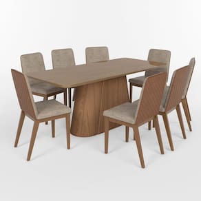 - Sapatas deslizantes para não riscar o chão. Medida da Mesa (A x L x P): 80cm x 200cm x 100cm Peso da Mesa: 74 kg Mesa suporta até: 40 kg Acabamento da Cadeira/Banco: Pintura Texturizada Acabamento da Mesa: Pintura UV Acompanha Manual de Instalação: Sim Almofada do assento: Fixa Altura do Conjunto: 80 cm Ambiente Principal: Sala de Jantar Cadeira/Banco Estofada: Encosto e Assento Estofados Cadeira/Banco estofada: Encosto e Assento Estofados Cadeira/Banco suporta até: 120 kg codigo_ean: 7900288169754 Complexidade da Montagem: Alta: deve ser montado por um montador especializado Configuração do Conjunto: Mesa com Cadeiras Cor: Marrom/Caramelo/Creme Cor da Base: Marrom Cor das Cadeiras: Marrom Cor do Produto: Marrom/Caramelo/Creme Cor do Tampo: Marrom Cor Secundária: Marrom De Canto (Canto Alemão): Não Design da Base: Trapézio Enchimento do Assento: Espuma D-23 Enchimento do Encosto: Espuma D-23 Escala de Brilho: Fosco Espessura do Tampo: 29 mm Estrutura do Encosto: MDF Formato do Tampo: Retangular Informações Complementares: "• Tampo com Acabamento em usinagem negativa; • Borda Arredondada com Pintura Laqueada que garante mais Resistência e durabilidade; • Vidro com pintura em Off White e canto arredondado acompanhando o acabamento do Tampo;" Itens Inclusos: 1 Mesa, 8 Cadeiras e Manual de Montagem Largura do Conjunto: 200 cm Linha ou Coleção: Olivia Manual de Montagem e Instalação: https://product-hub-prd.madeiramadeira.com.br/515538666/documents/049ada5a-c120-4b6d-a063-59b9baf5730a2983321307517492202266662.pdf Marca: Henn Material da Base da Mesa: MDF/MDP Material da Estrutura da Cadeira: MDF/Madeira Maciça Material do Tampo: Vidro/MDF Material Principal: Madeira/MDF Material Principal das Cadeiras/Bancos: Madeira Maciça Medida da Base (A x L x P): 77cm x 120cm x 50cm Medida da Cadeira/Banco (A x L x P): 91cm x 46cm x 55cm Medida do Tampo (L x C x E): 100cm x 200cm x 2,9cm Mesa Dobrável: Não Mesa Extensível: Não Necessita Montagem: Sim Origem do Produto: Nacional Peso da Cadeira/Banco: 6,5 kg Possui Apoio para Braços: Não Possui Apoio Para os Pés: Não Possui Prateleiras: Não Possui Suporte Giratório: Não Possui Vidro: Sim Profundidade do Conjunto: 100 cm Quantidade de Cadeiras: 8 Quantidade de Lugares: 08 Recomendações de Uso, Manutenção e Limpeza: Para limpeza de seu móvel, use uma flanela seca ou umedecida. Não utilize produtos químicos que possam danificar o produto. Revestimento da Cadeira/Banco: Courino Sistema de Montagem: Parafusos e Cavilhas Tipo de Assento: Fixo Tipo de Encosto: Fixo