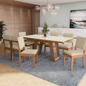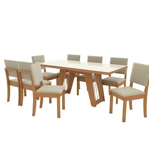 Conjunto para Sala de Jantar Mesa com 8 Cadeiras Canela/ Bege