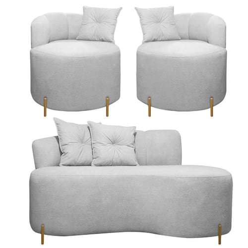 Eleve o conforto e o estilo da sua sala com nosso conjunto de sofá e poltrona de formato orgânico! Fabricado com espuma D26 de alta densidade, este conjunto oferece o máximo de conforto e durabilidade. Seu design exclusivo, com bordas arredondadas e pés em metal, adiciona um toque de elegância e modernidade ao ambiente.