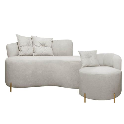 Eleve o conforto e o estilo da sua sala com nosso conjunto de sofá e poltrona de formato orgânico! Fabricado com espuma D26 de alta densidade, este conjunto oferece o máximo de conforto e durabilidade. Seu design exclusivo, com bordas arredondadas e pés em metal, adiciona um toque de elegância e modernidade ao ambiente.