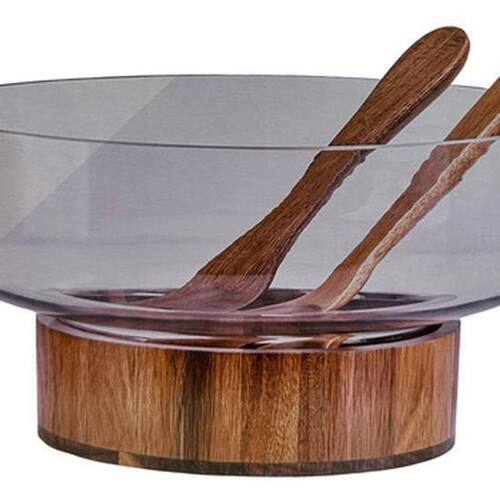 Material de Qualidade: Saladeira em vidro durável e talheres de servir em madeira robusta. Design Elegante: A transparência do vidro e o toque natural da madeira conferem sofisticação e charme à sua mesa. Tamanho Ideal: Com 30 cm de diâmetro, a saladeira é perfeita para servir saladas em almoços e jantares com familiares e amigos. Conjunto Completo: Inclui 4 peças - 1 saladeira e 3 talheres de servir colher, garfo e pinça . Fácil de Limpar: Vidro de fácil limpeza e madeira de manutenção simples, garantindo praticidade no dia a dia. Benefícios: