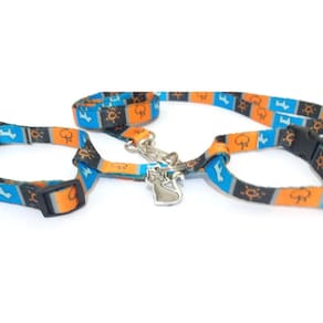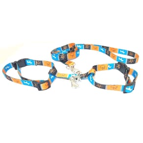 Peitoral confeccionado em tecido de seda estampada; Presilhas em plástico com passadores de ajuste; Acompanha guia de 90 cm em tecido de seda estampada com mosquetão pequeno; Ideal para gatos; Tamanho único. Medidas aproximadas: 12 cm a 22 cm de circunferência abdominal. Cor: Laranja Uma ótima escolha para passear com seu amigo felino com conforto, estilo e segurança. Marca: Não Informado Ean: 7431351612759