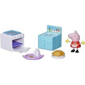 Peppa Adora Cozinhar: A Aventura Culinária da Peppa! O brinquedo Peppa Adora Cozinhar da Hasbro convida as crianças a participarem das aventuras culinárias da Peppa Pig na cozinha Este kit inclui uma figura da Peppa vestindo avental e luvas de cozinha, além de 5 acessórios divertidos para a brincadeira