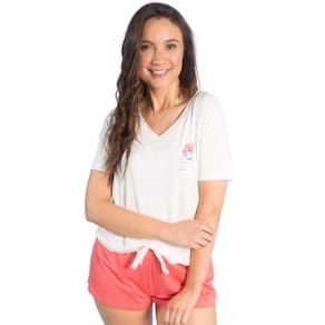 A camisa apresenta um design clássico e descontraído, perfeito para uma sensação de leveza durante o sono. Enquanto isso, o short oferece liberdade de movimento e conforto supremo, tornando este conjunto ideal para noites tranquilas de verão.