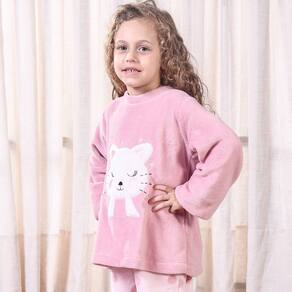 Conjunto Pijama Plush Infantil Quentinho e Divertido Gata - 4 - 100% Poliéster, Quentinho e Divertido