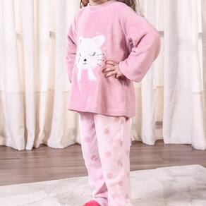 Conjunto Pijama Plush Infantil Quentinho e Divertido Gata - 10 - 100% Poliéster, Quentinho e Divertido