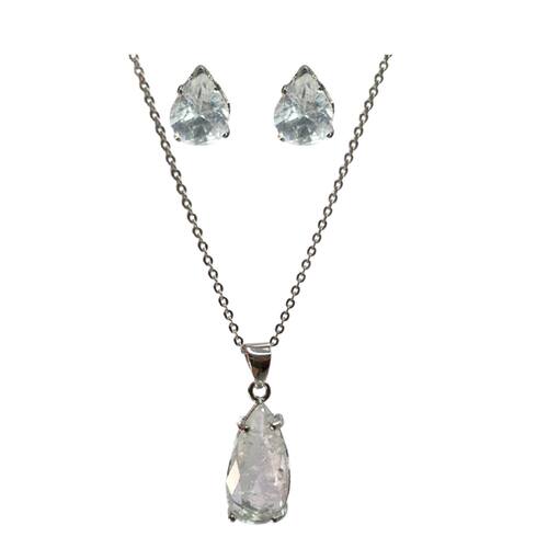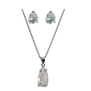 Conjunto Pingente Pedra Gota - Prata Pedra Transparente