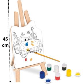 ESPECIFICAÇÕES: - Recomendado a partir de 4 anos - Dimensões da Embalagem (CLA): 48 x 5 x 30 cm - 01 Cavalete em Madeira (45 cm) - 04 Telas em Madeira - 01 Paleta em Madeira - 06 Tintas Guache - 01 Pincel - Marca: Nig Brinquedos