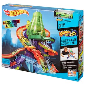 Descubra muita diversão com esta Estação Científica, onde loucas experiências com cores podem sair do controle! Um cientista maluco prendeu um carro Color Shifters® sob a cachoeira de mudança de cor, e está experimentando todos os tipos de combinações insanas de cores! Você consegue ajudar o carro a escapar? Descubra neste passeio cheio de aventuras! Lance para a ação, correndo com o carro pela pista e liberte: o. Ah não! Parece que o cientista maluco encurralou você! Aperte a alavanca de liberação e solte o carro no tanque abaixo, para que sua cor volte ao normal. As crianças vão adorar a emoção ao tentar escapar do laboratório do cientista maluco, enquanto observam as mais piradas combinações de cores. Vem com três diferentes zonas de mudança de cor, além de um carro Color Shifters®, para que as crianças possam se divertir assim que abrirem a caixa.