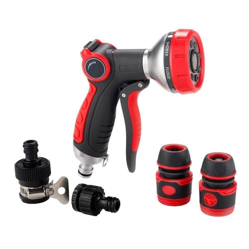 Itens Inclusos: 1 Pistola esguicho de água multifuncional 8 em 1 1 Bico adaptador para Engate Rápido 1 Bico adaptador para Engate Rápido com Abraçadeira para Tubo 2 Conector engate rápido